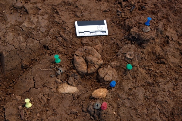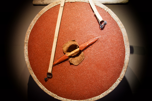 Lino Mantecón: Se ha logrado recuperar dentro de un contexto arqueológico un conjunto de piezas metálicas y con restos de madera. Se trata de un conjunto de piezas machihembradas y anilla de hierro (anilla de telamón de tipología de placas), tachuelas de cobre con función ornamental y restos de madera que hemos identificado como un aplique para sujeción y suspensión de las correas de un escudo (cinchas de "tiracol" o "telamón"). Por paralelos en el mundo celtibérico, se sostiene que estos objetos metálicos se relacionan con el escudo circular celtibérico o caetra que constaba de un par de piezas gemelas de hierro con una anilla cada una, que servían para la sujeción de las correas de las que, en banderola, llevaba el guerrero suspendido o a caballo. La pieza es excepcional, a pesar de su pequeña entidad, pues resulta ser la única de un escudo de la Edad del Hierro encontrado en el territorio de la Comunidad Autónoma de Cantabria y no procede de necrópolis de incineración, sino de un contexto bélico. Asimismo, la conservación de fragmentos de la madera resulta ser el único resto asociado a un escudo encontrado en la Península Ibérica para este periodo cronológico (posiblemente siglos. VI al III a. C.). La reconstrucción del tamaño del escudo nos ilustra el modo de uso, que se vincula con el modelo de infantería pesada y con la lucha en formación. El escudo encontrado tendría similitudes con las dimensiones de lo representado en la estela de Zurita.